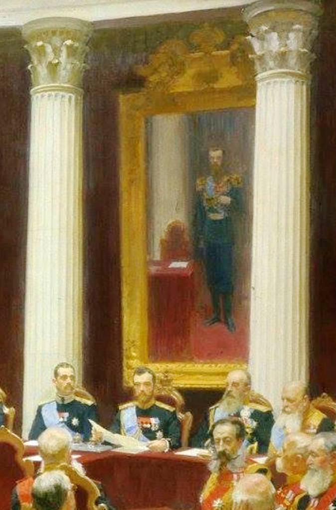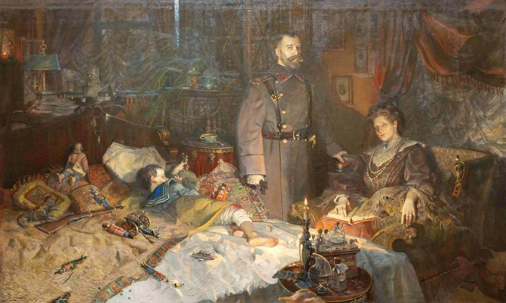 The Emperor is seen as a ‘proud papa’ pointing at something which has caught his eye in the garden, and he wants to share with Alexei.