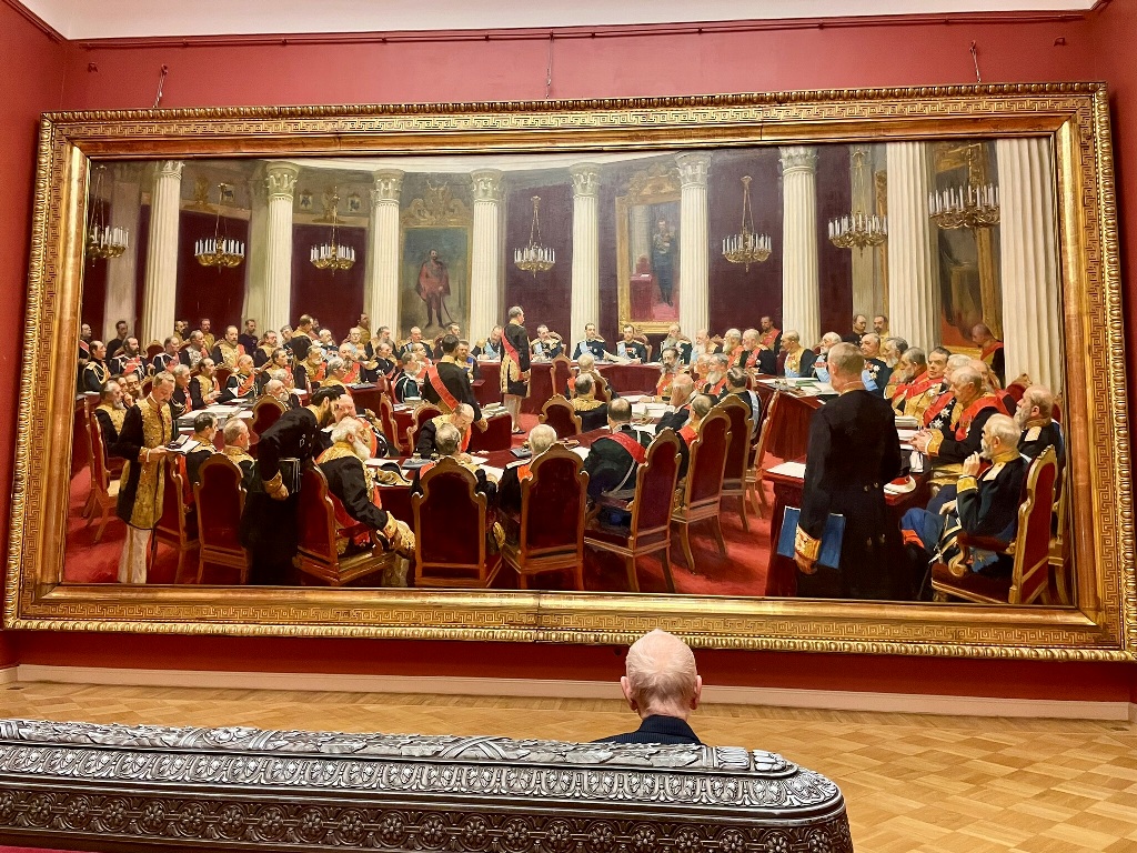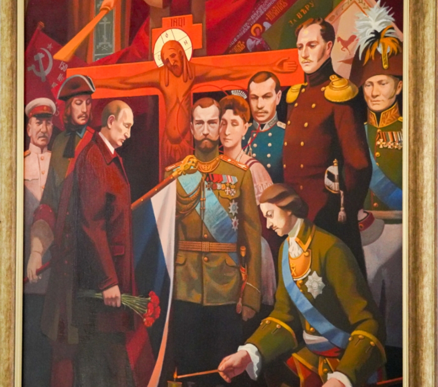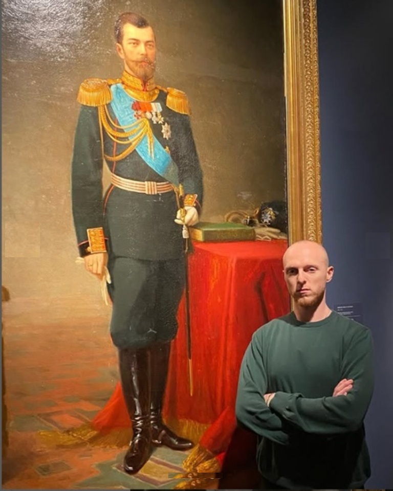 PHOTO: the contemporary Russian artist Yuri Ashikov visiting his “favourite museum”, while posing in front of a portrait of Emperor Nicholas II
