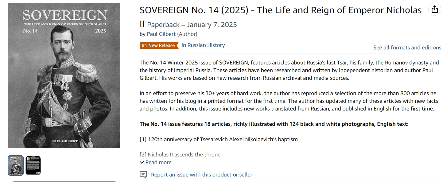 The No. 16 Winter 2026 issue of SOVEREIGN features 28 articles about Russia’s last Tsar, his family, the Romanov dynasty and the history of Imperial Russia. These articles have been researched and written by independent historian and author Paul Gilbert. His works are based on new research from Russian archival and media sources.
