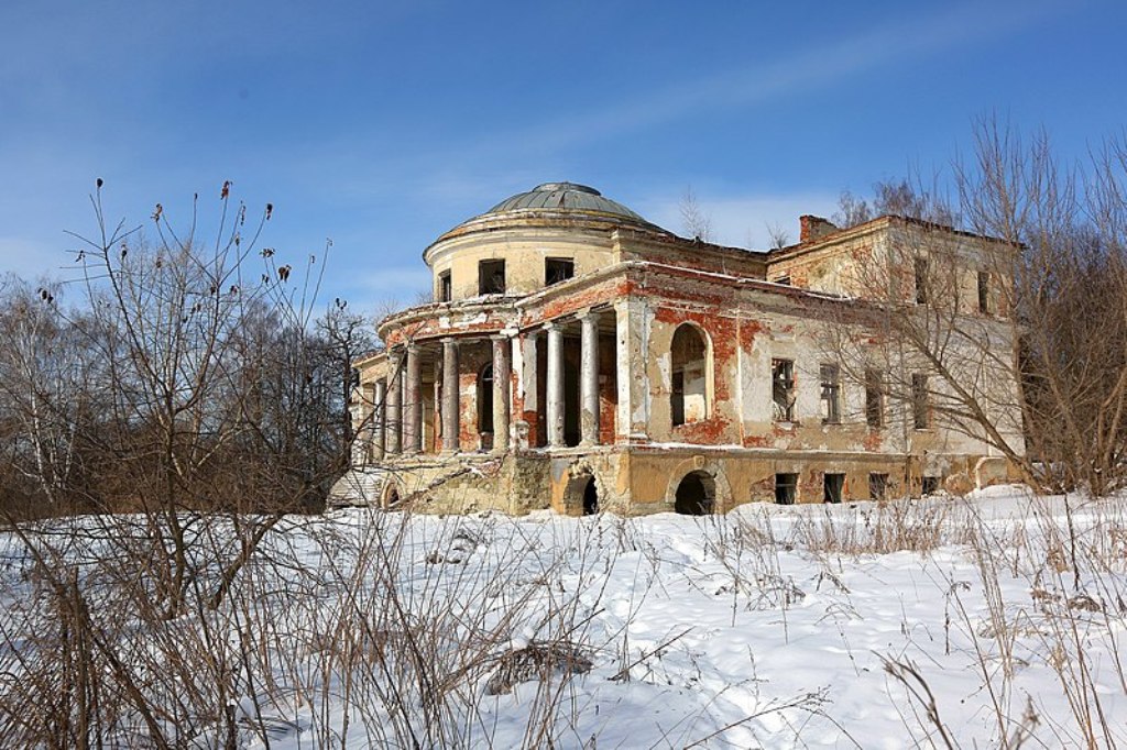 The general plan of the estate initially consisted of three buildings (palace, a secondary building, and stables). The palace was designed in the style of an Italian villa, which included a park with rare trees and fountains. The palace consisted of two stories high, made in the neoclassical style, with a rotunda, surrounded by a balustrade and sloping stairs which led to the front entrance.