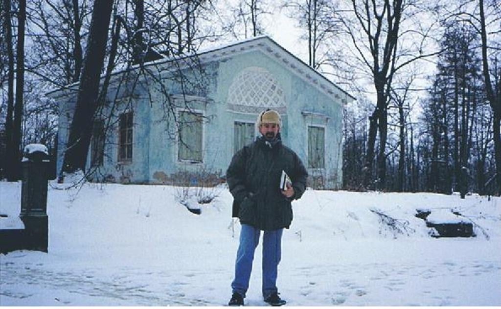 PHOTO: the author of this article Paul Gilbert standing on the frozen pond in front of the Children’s Island, near the Alexander Palace, was taken back in the 1990s during one of my visits to St. Petersburg.