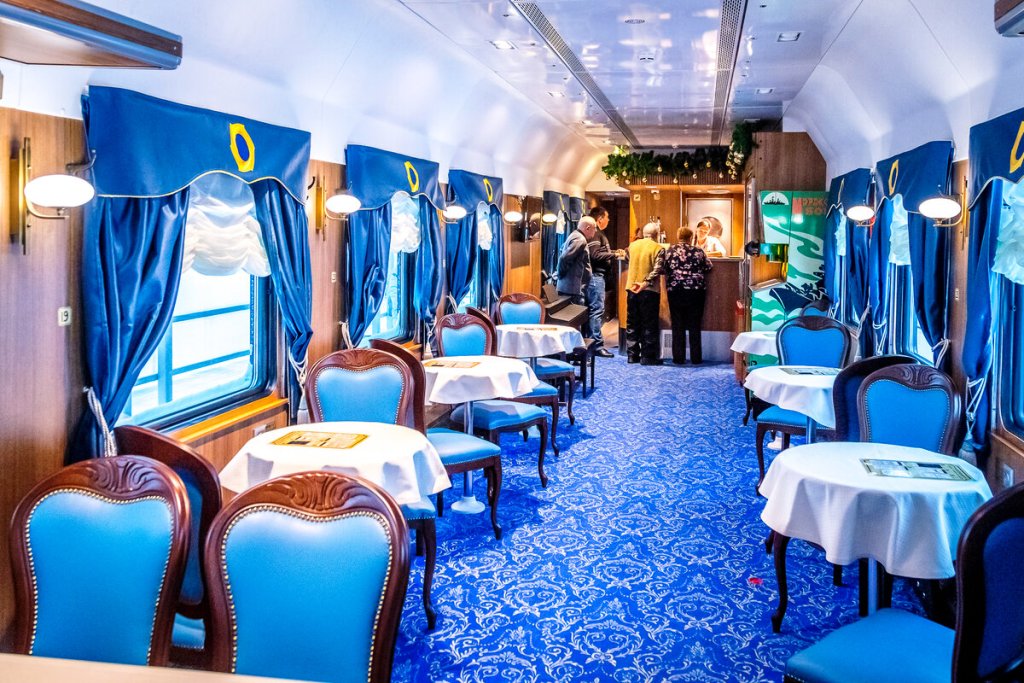Passengers can also try on the uniforms of the White Guards, take photos, and enjoy a cup of hot tea, bagels and local berries.