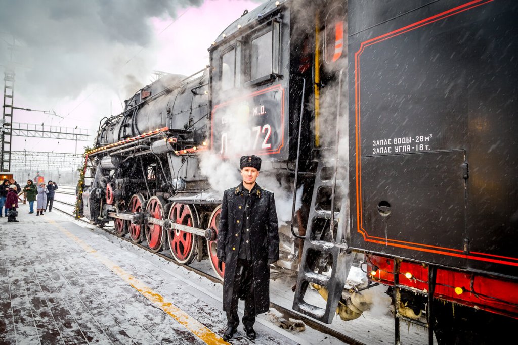 Passengers travelling on the vintage train are greeted on the platform by hospitable conductors wearing uniforms of early 20th century Imperial Russia-style, and white gloves (see photo below).