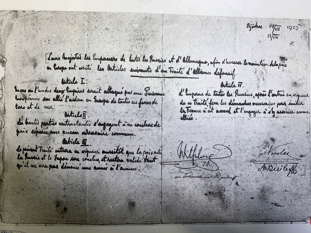PHOTO: The Treaty of Björkö signed by Emperors Nicholas II and Wilhelm II on 24th (O.S. 11th) July 1905