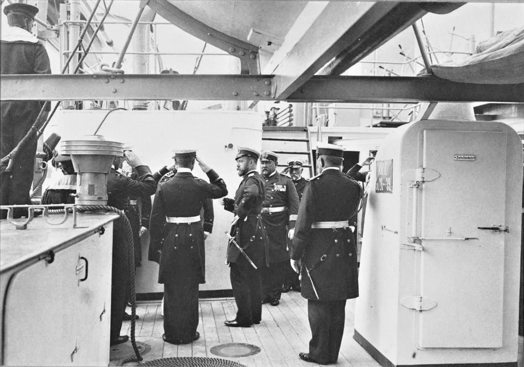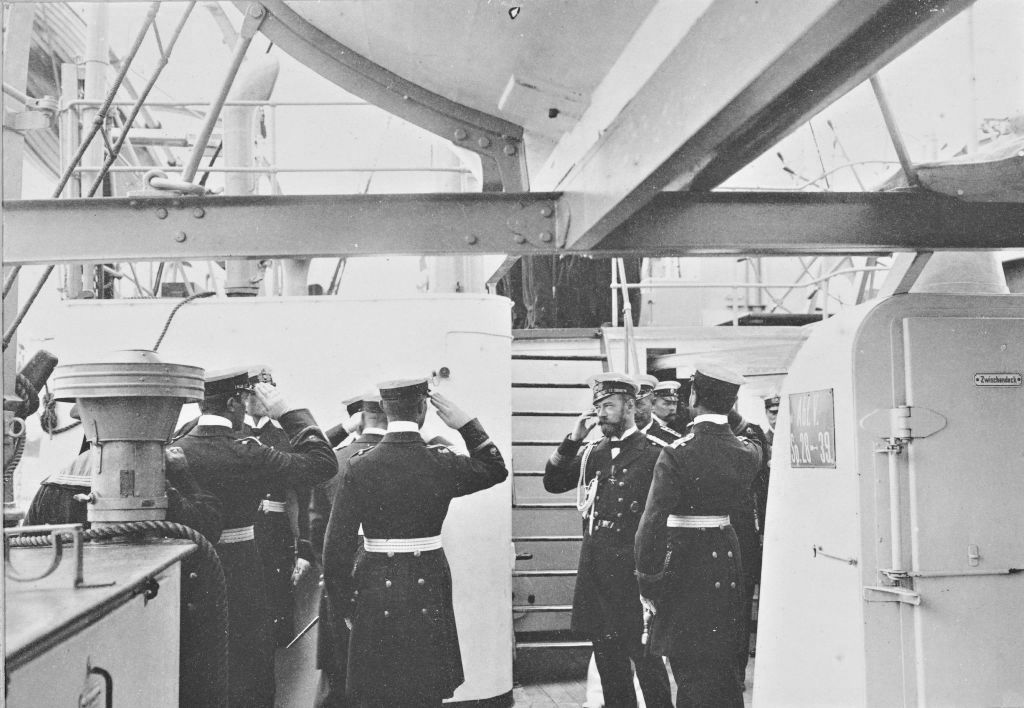 PHOTO: Nicholas II is greeted by officers on the deck of the SMS Berlin
