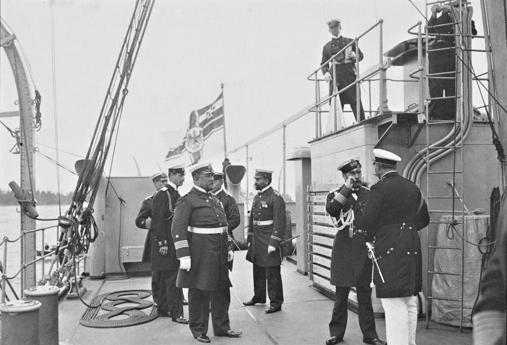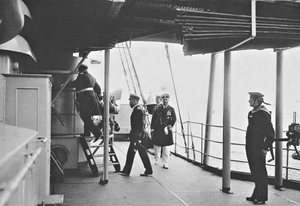 Nicholas II transferred from the Polar Star in a launch, taking him to the SMS Berlin – which had escorted the German emperor’s yacht – and lay anchor in the bay. He was greeted by Wilhelm II, who personally escorted his Russian cousin on an inspection tour of the newly commissioned cruiser of the German Imperial Navy.